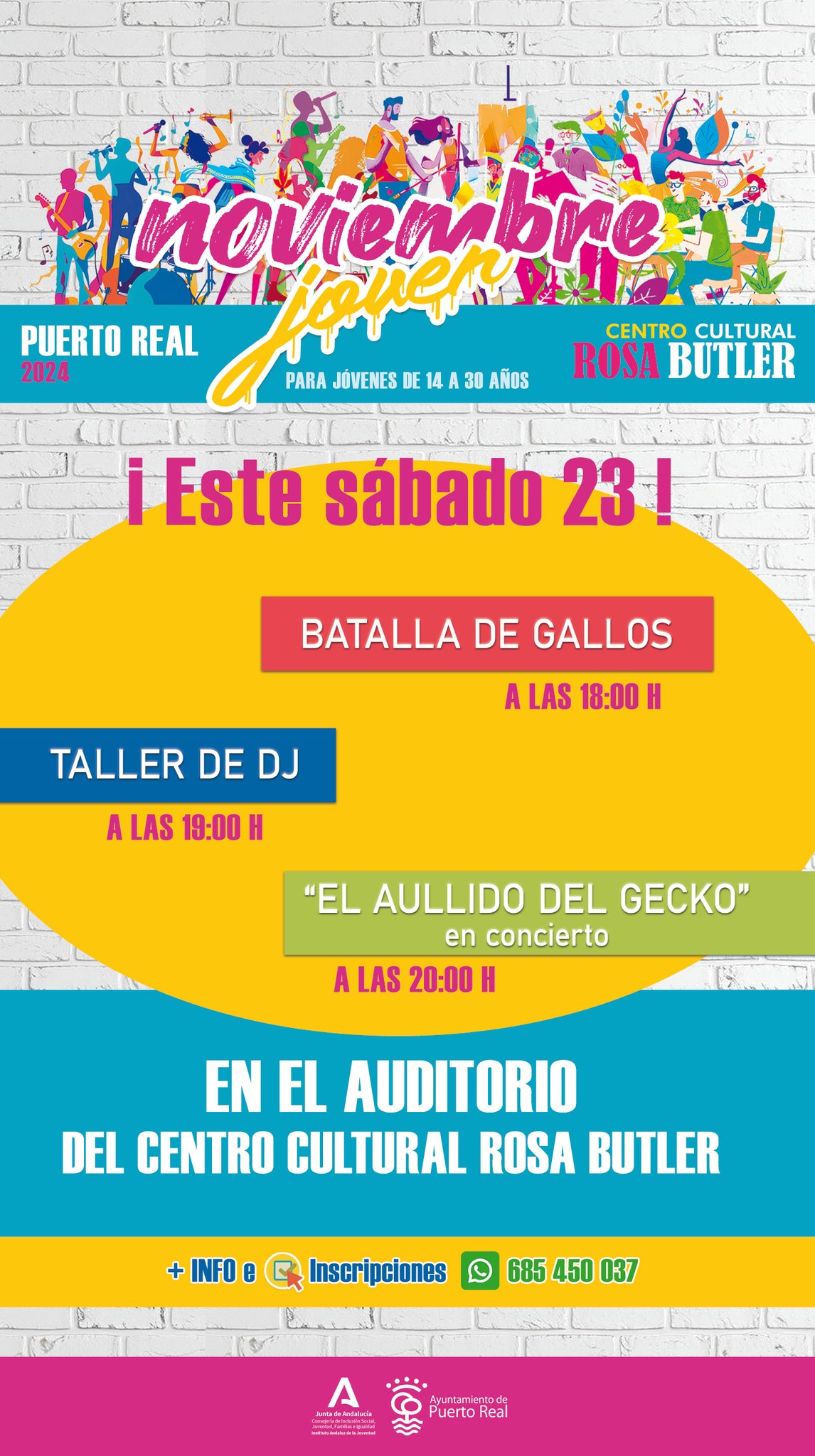 El pasado sábado 23 de noviembre, el Centro Cultural Rosa Butler acogió una nueva jornada de actividades dentro del programa del Mes de la Juventud, una iniciativa que busca dinamizar la vida cultural de Puerto Real con propuestas destinadas a jóvenes de todas las edades. A pesar de los esfuerzos organizativos, la jornada se vio afectada por una asistencia menor a la esperada, probablemente debido a una combinación de factores que comprometieron la visibilidad y el alcance del evento.
